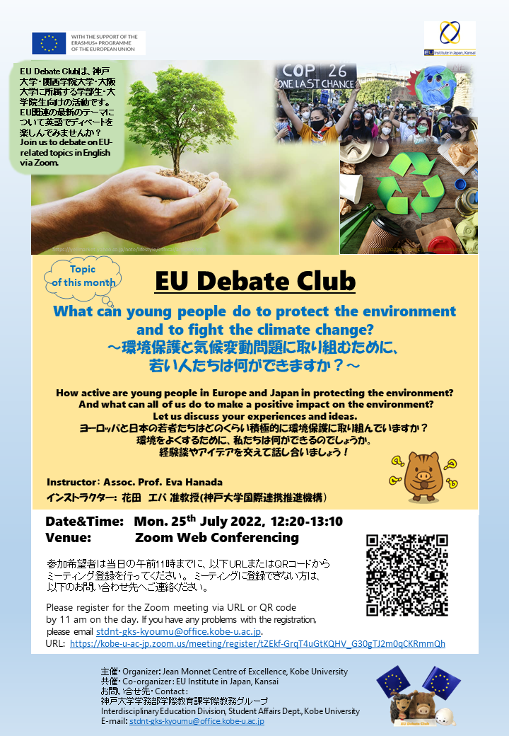 EUディベートクラブ「What can young people do to protect the environment and to fight the climate change?~環境保護と気候変動問題に取り組むために、若い人たちは何ができますか? ~」をZoomで開催します。(7/25)